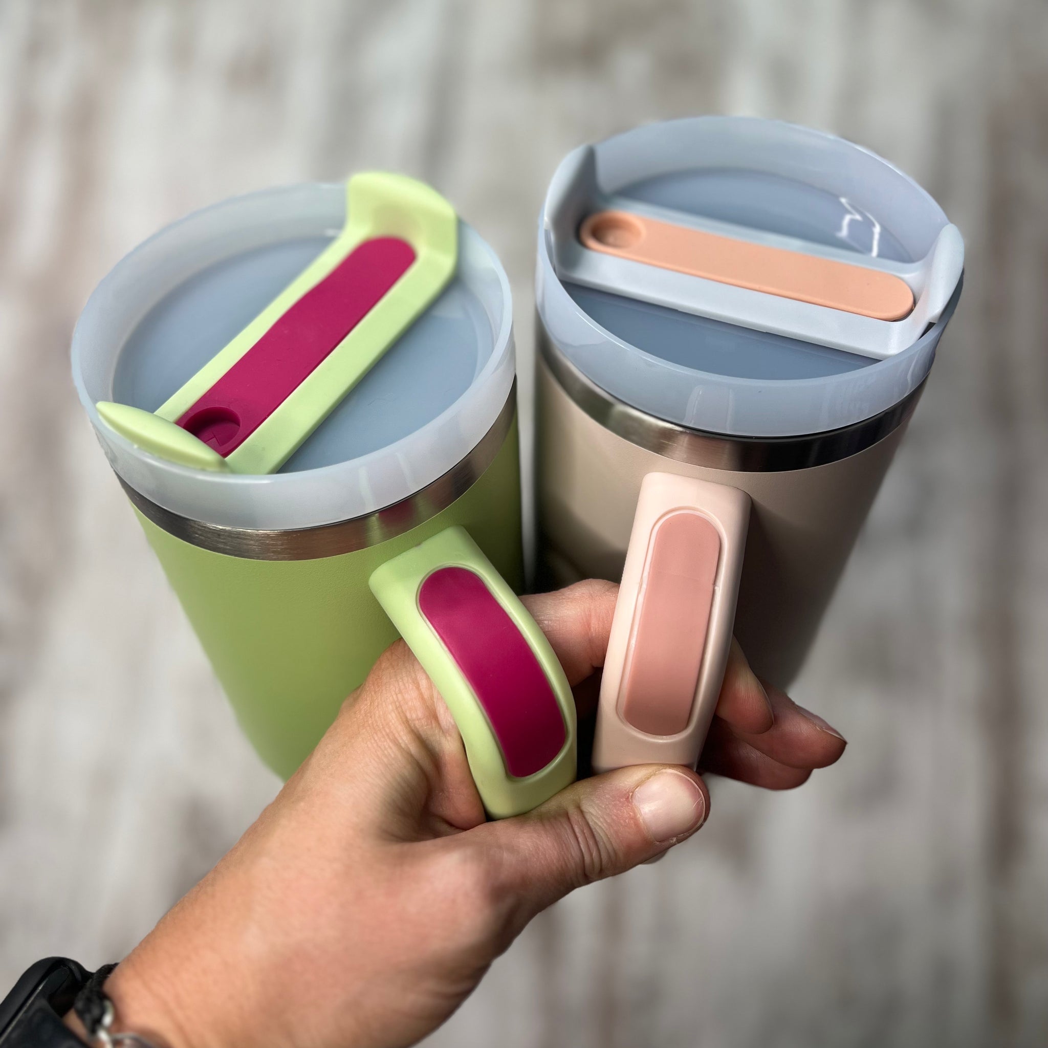 The Bradley Tumbler is a 40 oz stainless steel tumbler that features vacuum seal technology, a swivel lid with 3 options: a straw opening, drink opening, and a full cover top, as well as a powder coated finish. Comes with reusable straw.