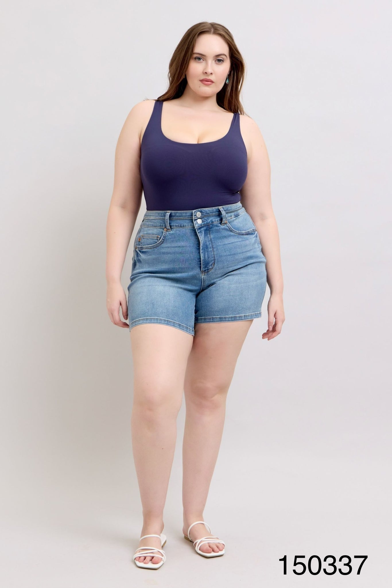 Judy Blue HW Tummy Control Cool Denim Double Waistband Shorts