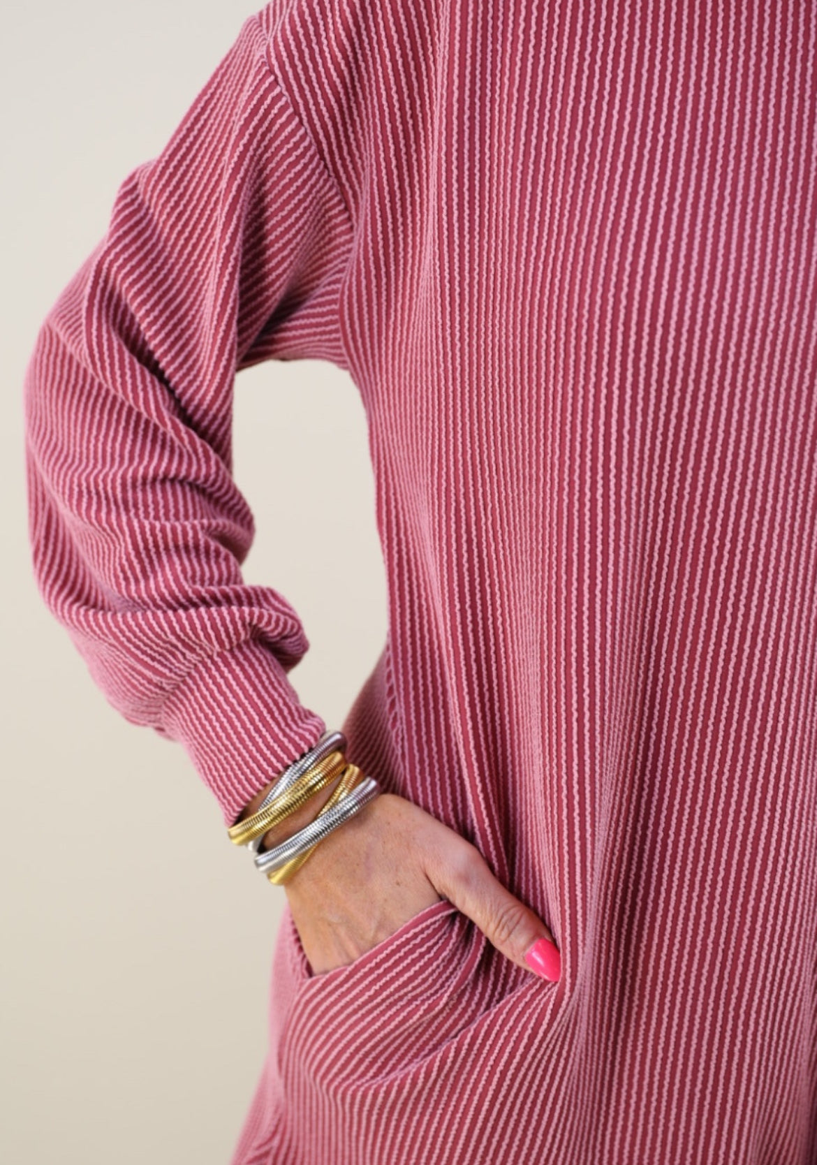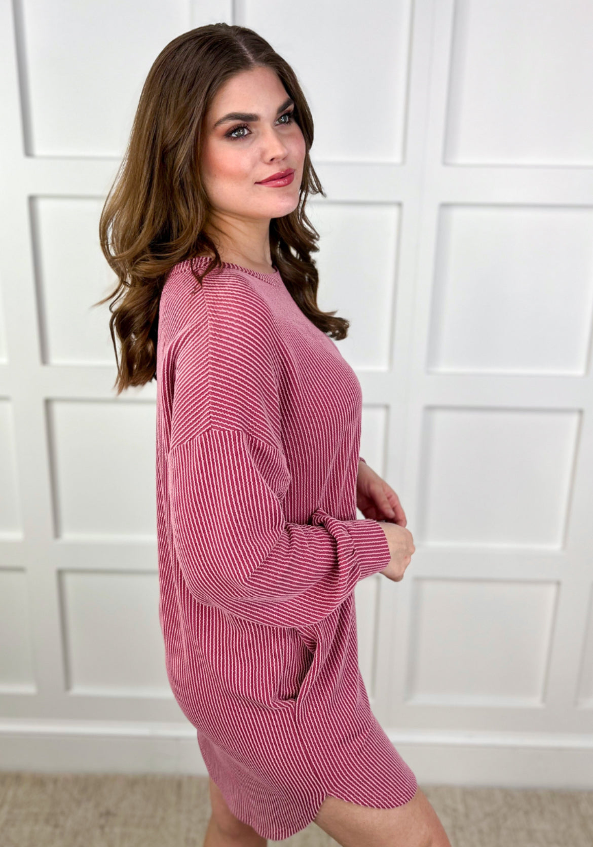 Stay comfortable and look great in our Hollis Ribbed Dress! This dress features long sleeves, a textured ribbed fabric, side pockets, and a rounded hem for a flattering fit. Perfect for any occasion, the Hollis Ribbed Dress will have you looking your best!