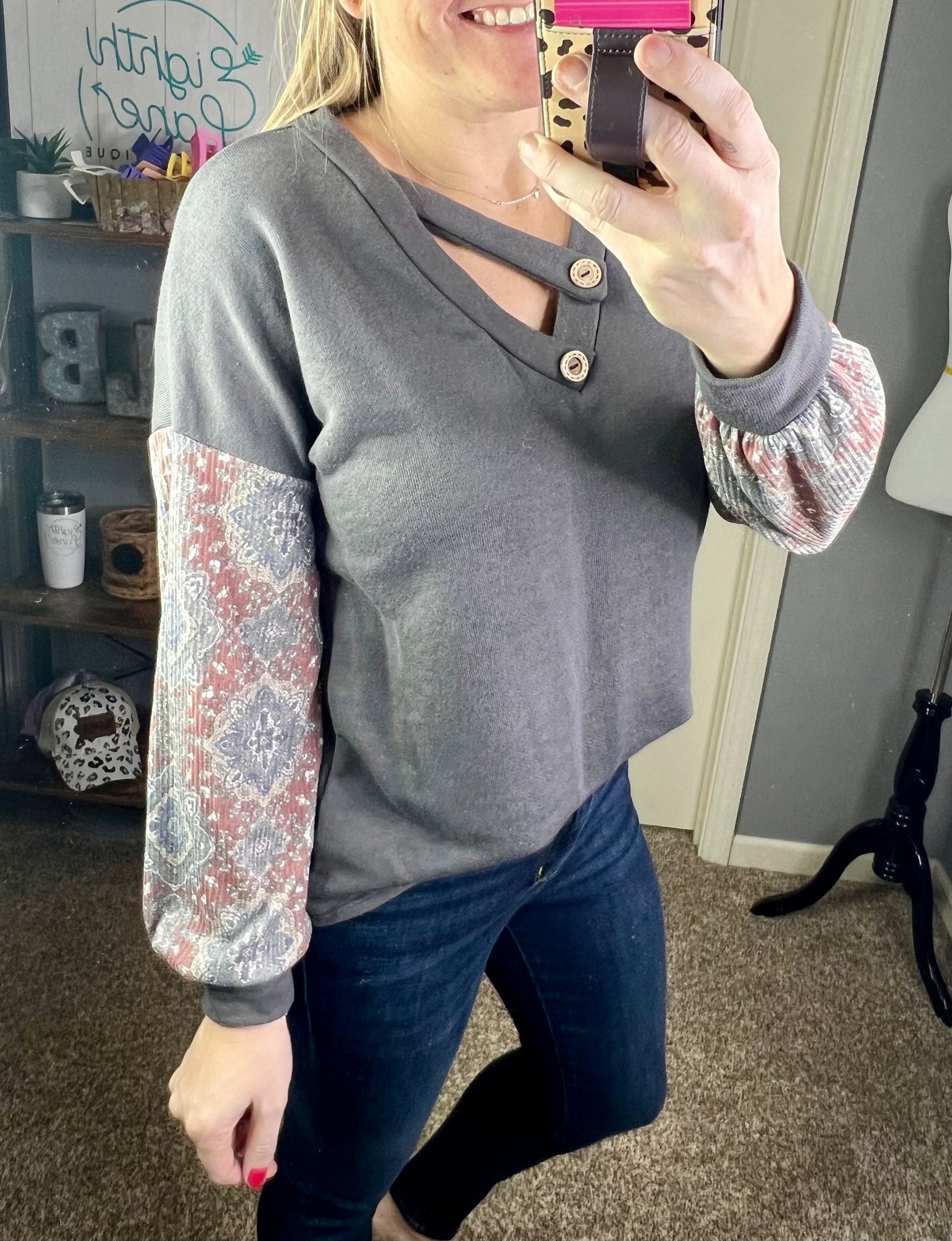 Charcoal button keyhole top